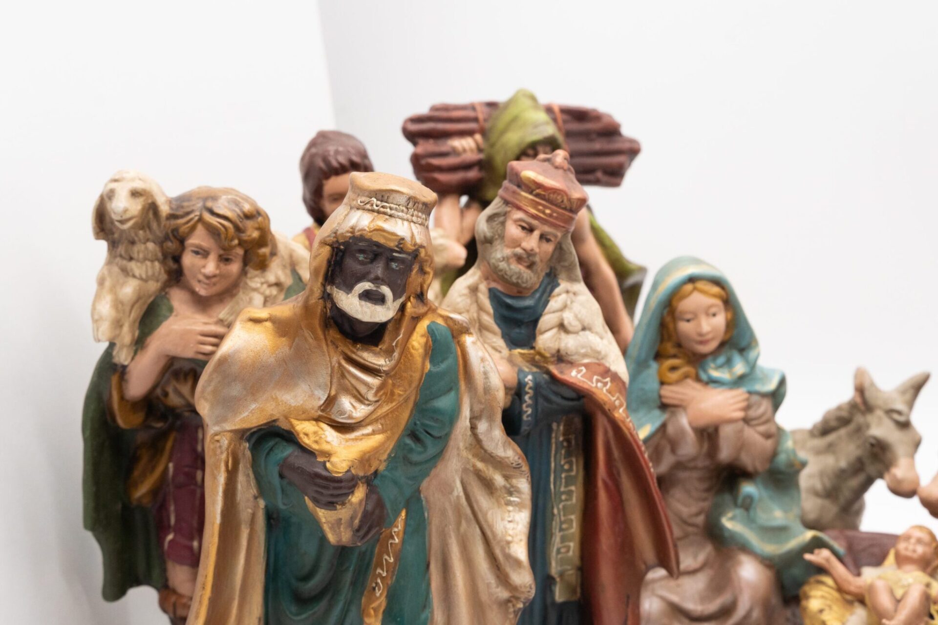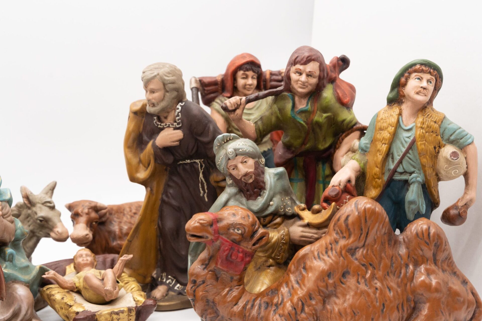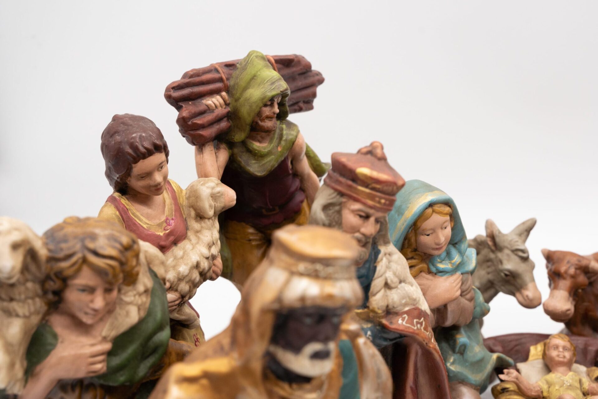 Presepe in ceramica dipinto a mano composto da 15 pezzi.