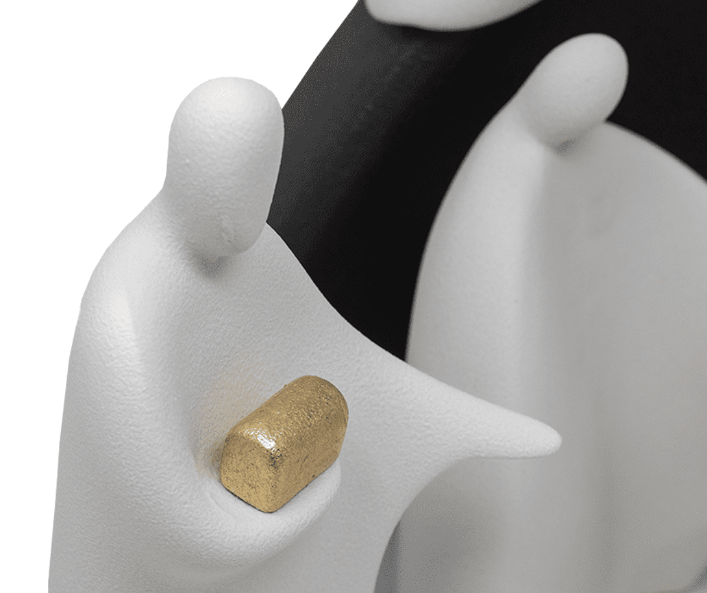 La poetica della capanna, il calore materno e il senso di protezione si fondono armoniosamente nella scultura in gres porcellanato che rappresenta la Natività. Le forme morbide ed essenziali catturano l’emozione e la meraviglia dell’evento, arricchite da dettagli esclusivi in oro e dalla colorazione della grotta in grigio fumo. Caratteristici i Re Magi colore bianco con preziosi doni dorati.
