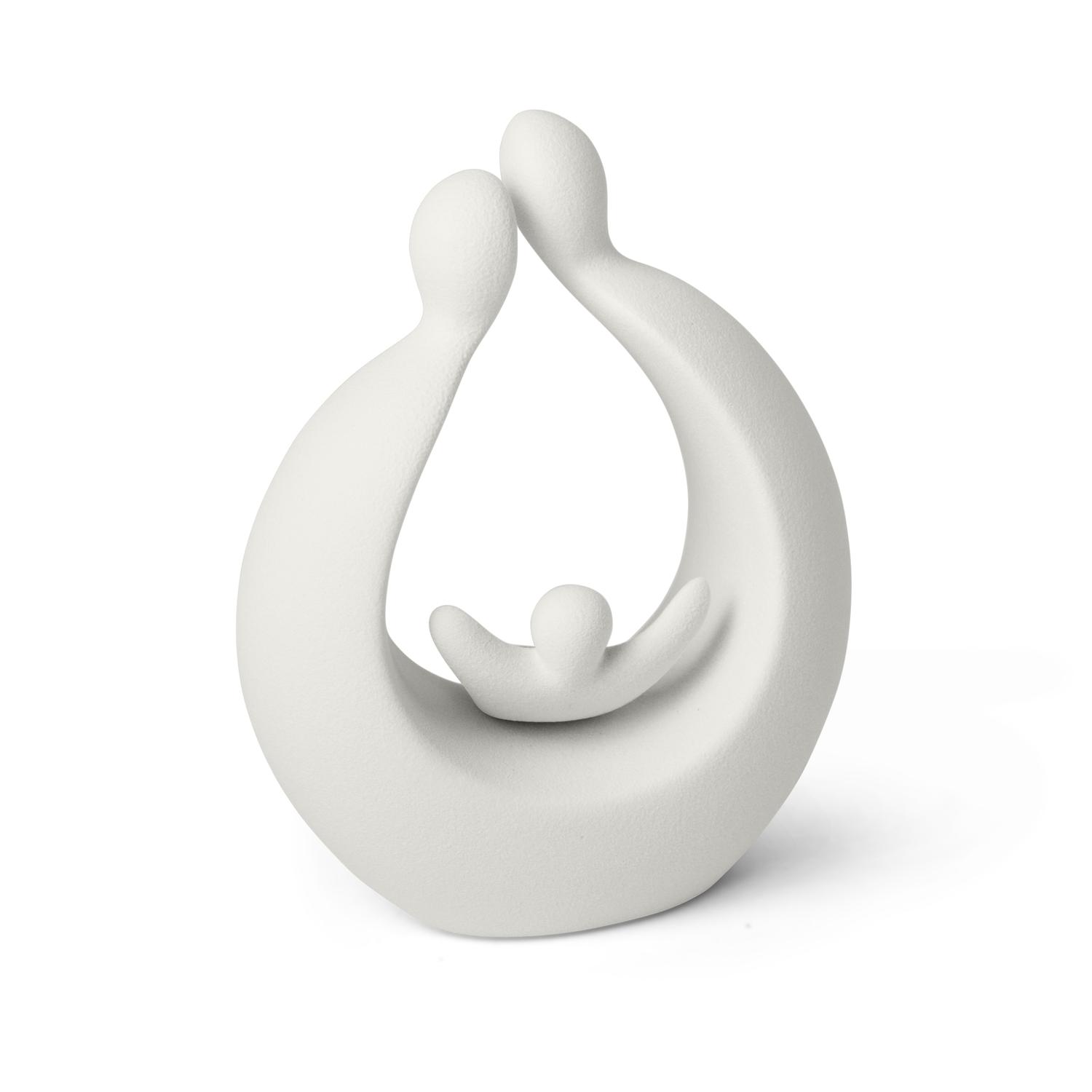 Il gesto del bambino esprime la gioia di essere nato e accolto dall’amore di mamma e papà. Questa scultura dai tratti puri ed essenziali ci ricorda che ovunque andremo e comunque saranno le cose, la famiglia rimane il punto di riferimento, l’abbraccio accogliente della casa.