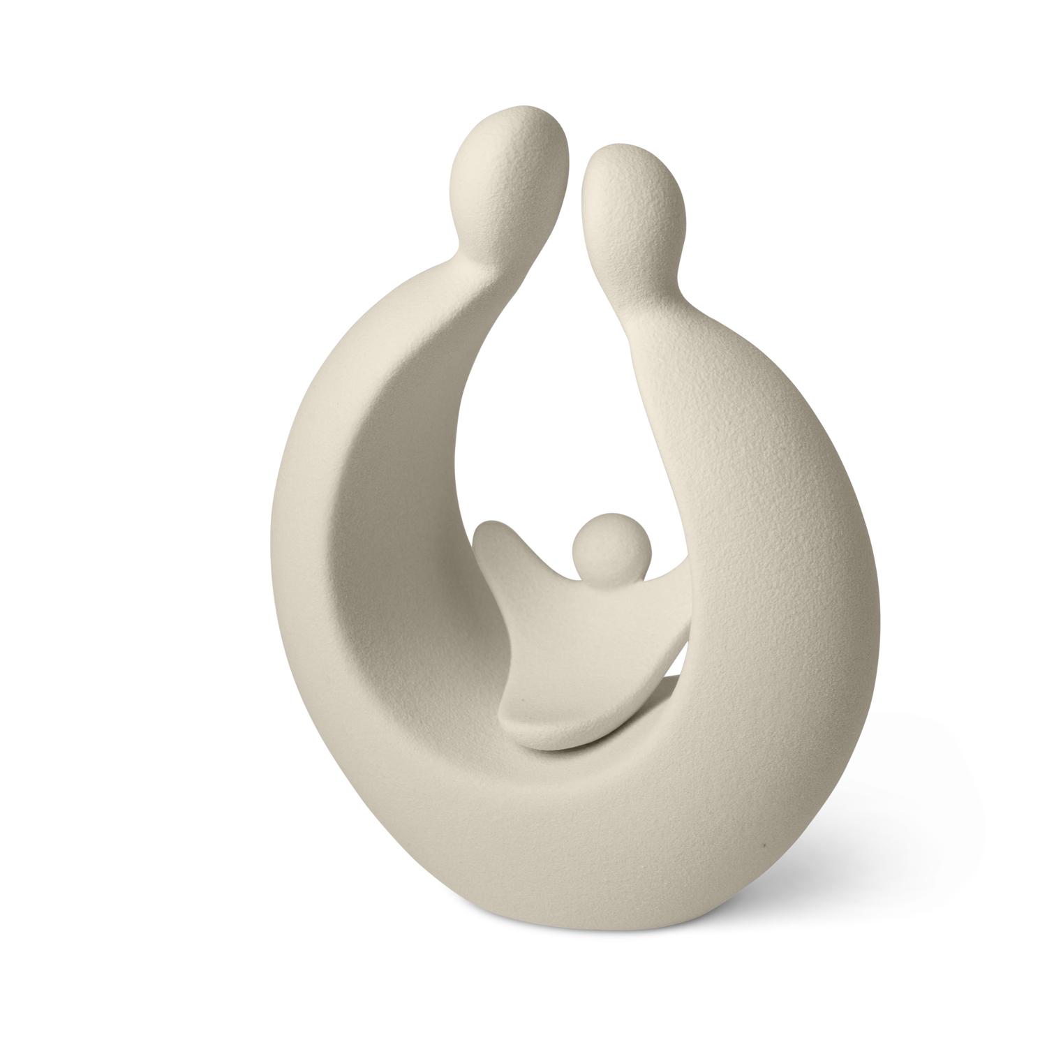Il gesto del bambino esprime la gioia di essere nato e accolto dall’amore di mamma e papà. Questa scultura dai tratti puri ed essenziali ci ricorda che ovunque andremo e comunque saranno le cose, la famiglia rimane il punto di riferimento, l’abbraccio accogliente della casa.
