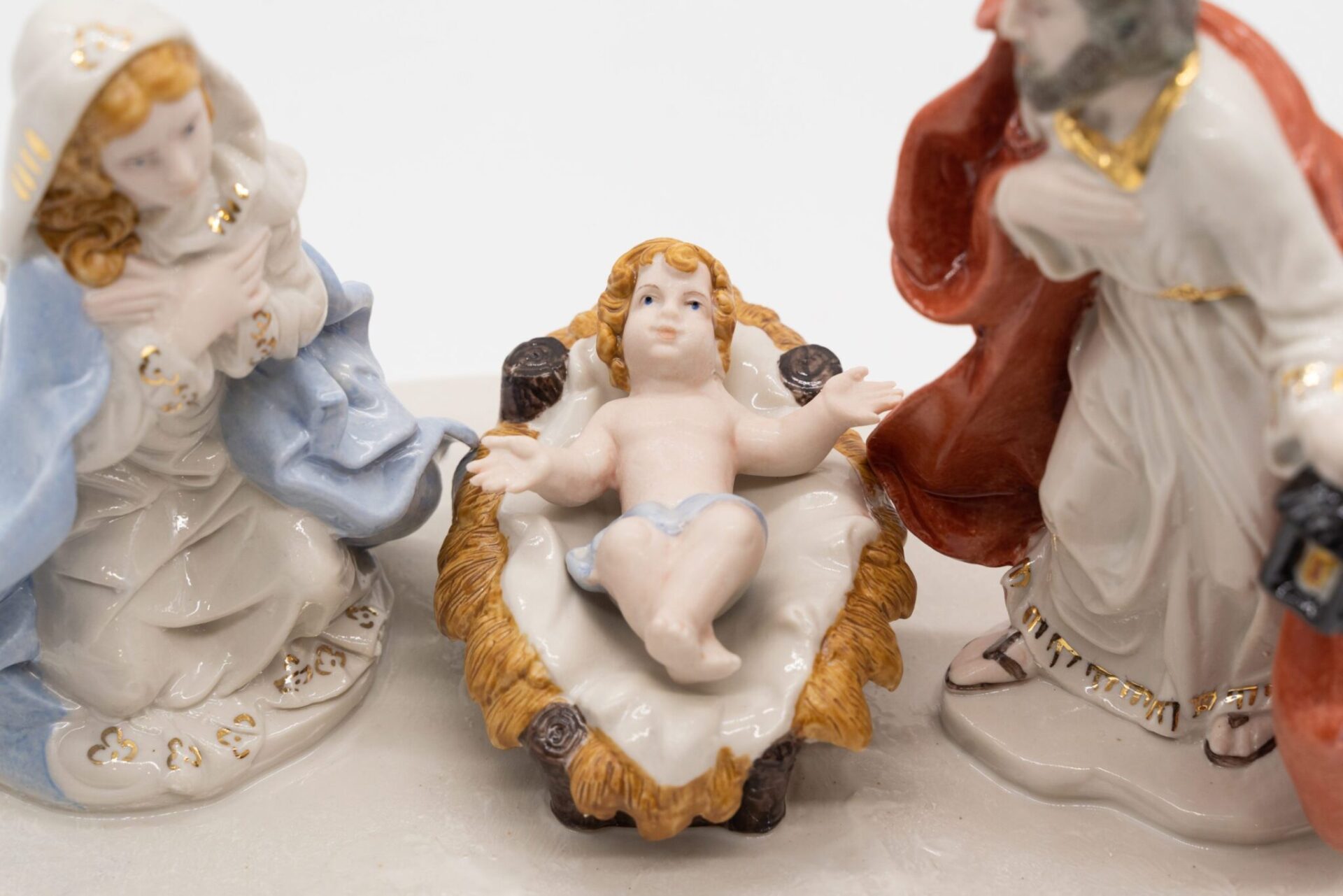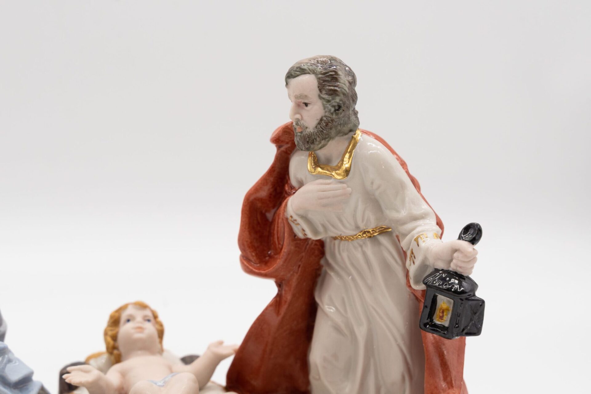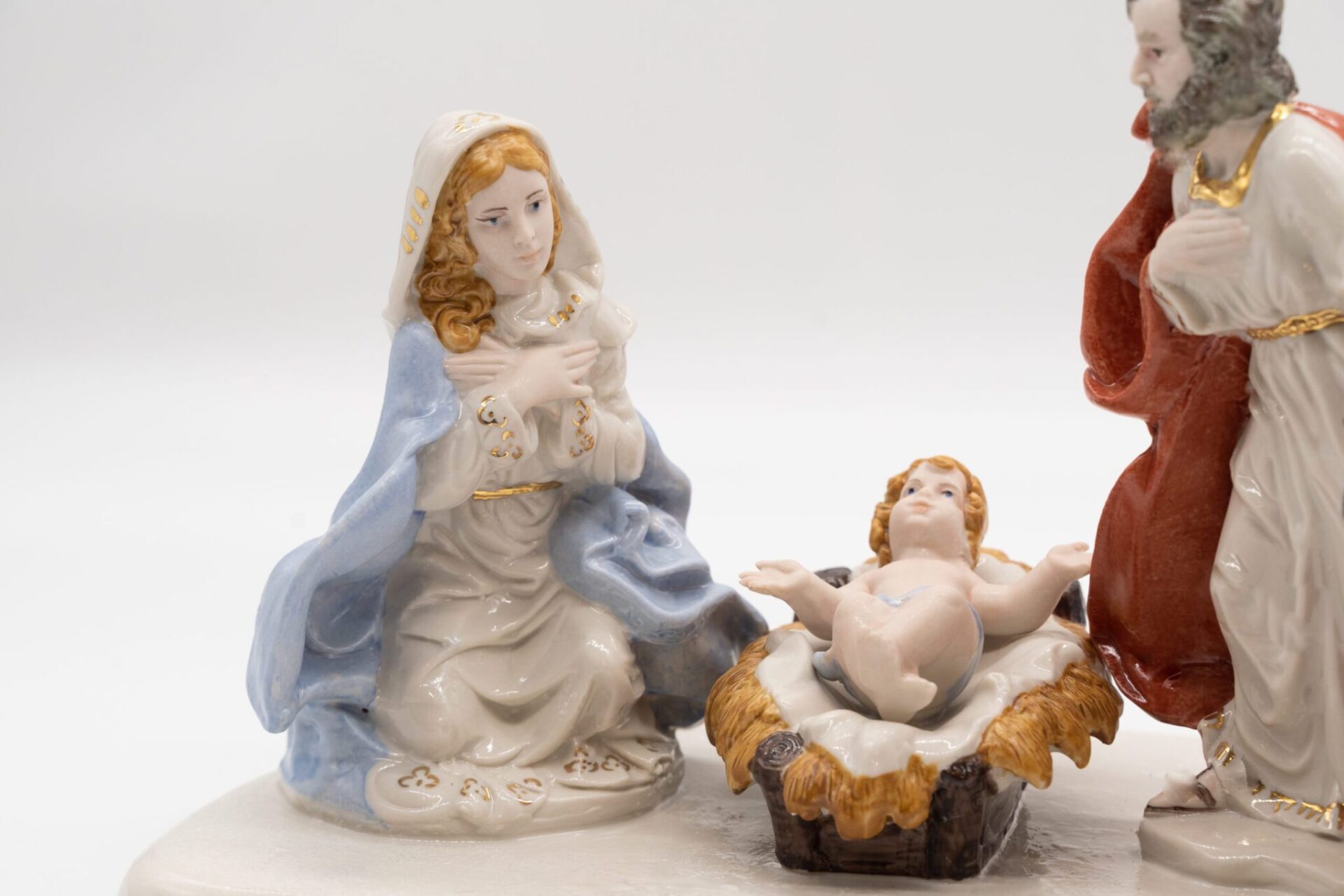 Presepe in porcellana Capodimonte dipinto a mano decorazioni in oro 24KT.