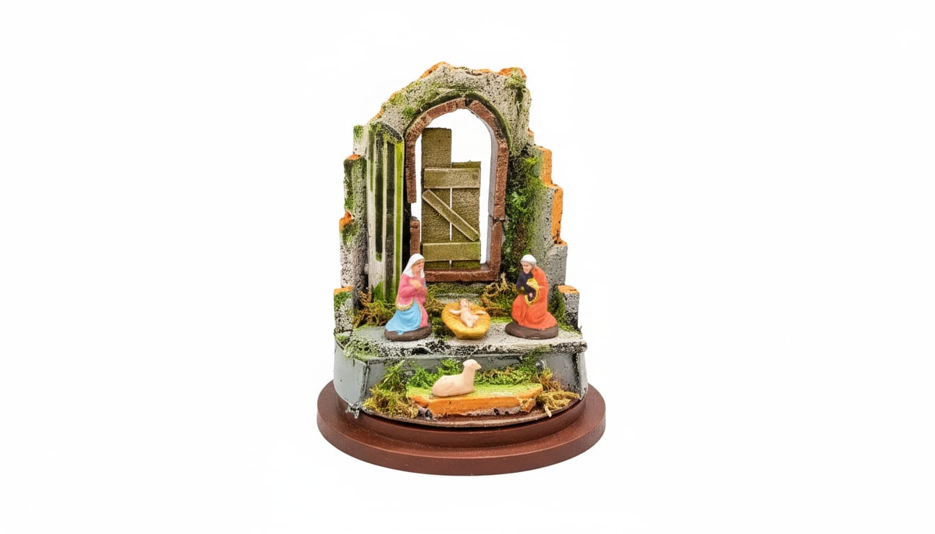 Presepe Napoletano In Campana di Vetro base legno 12×18 cm