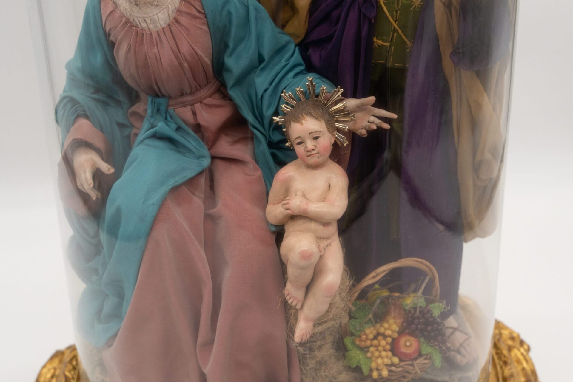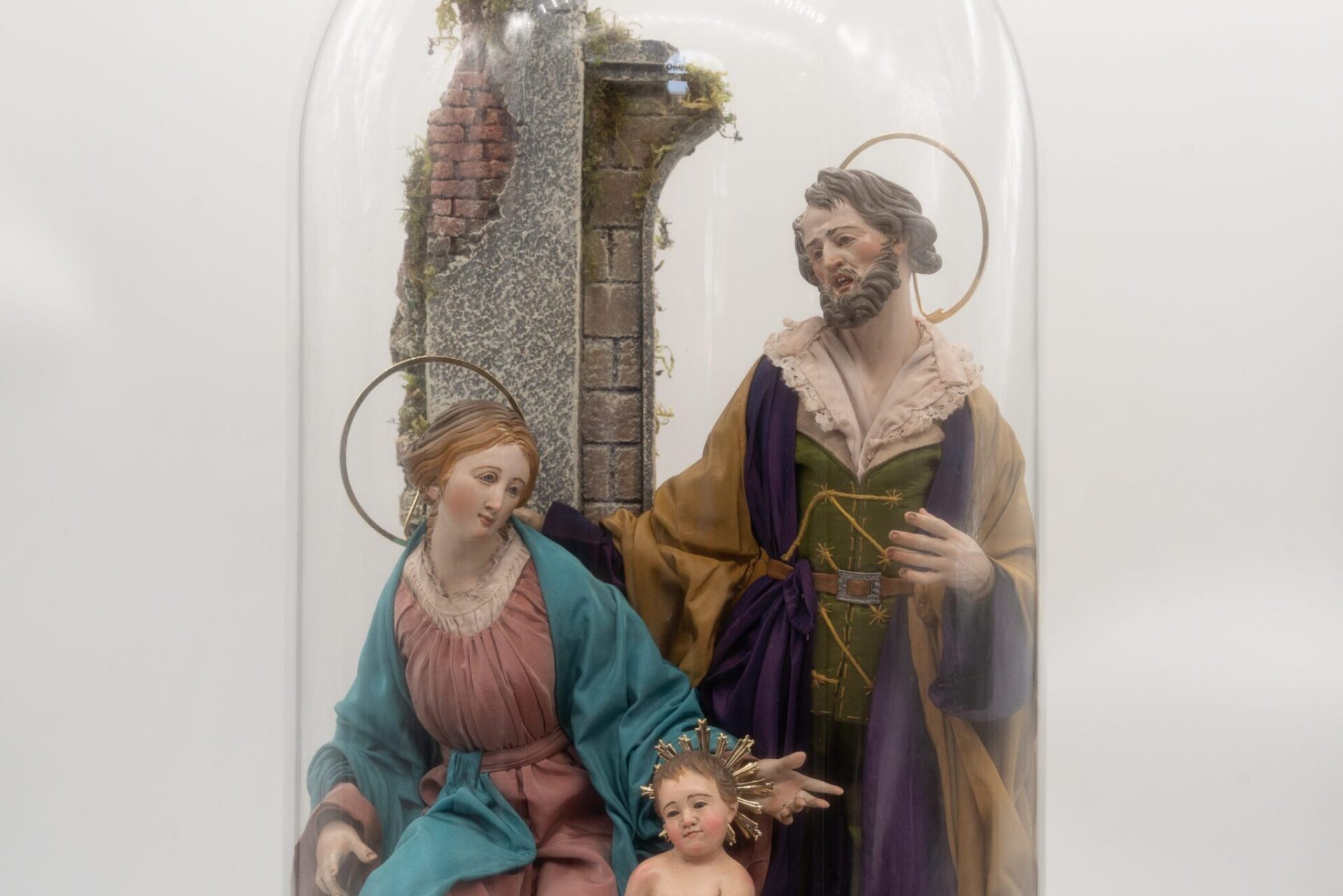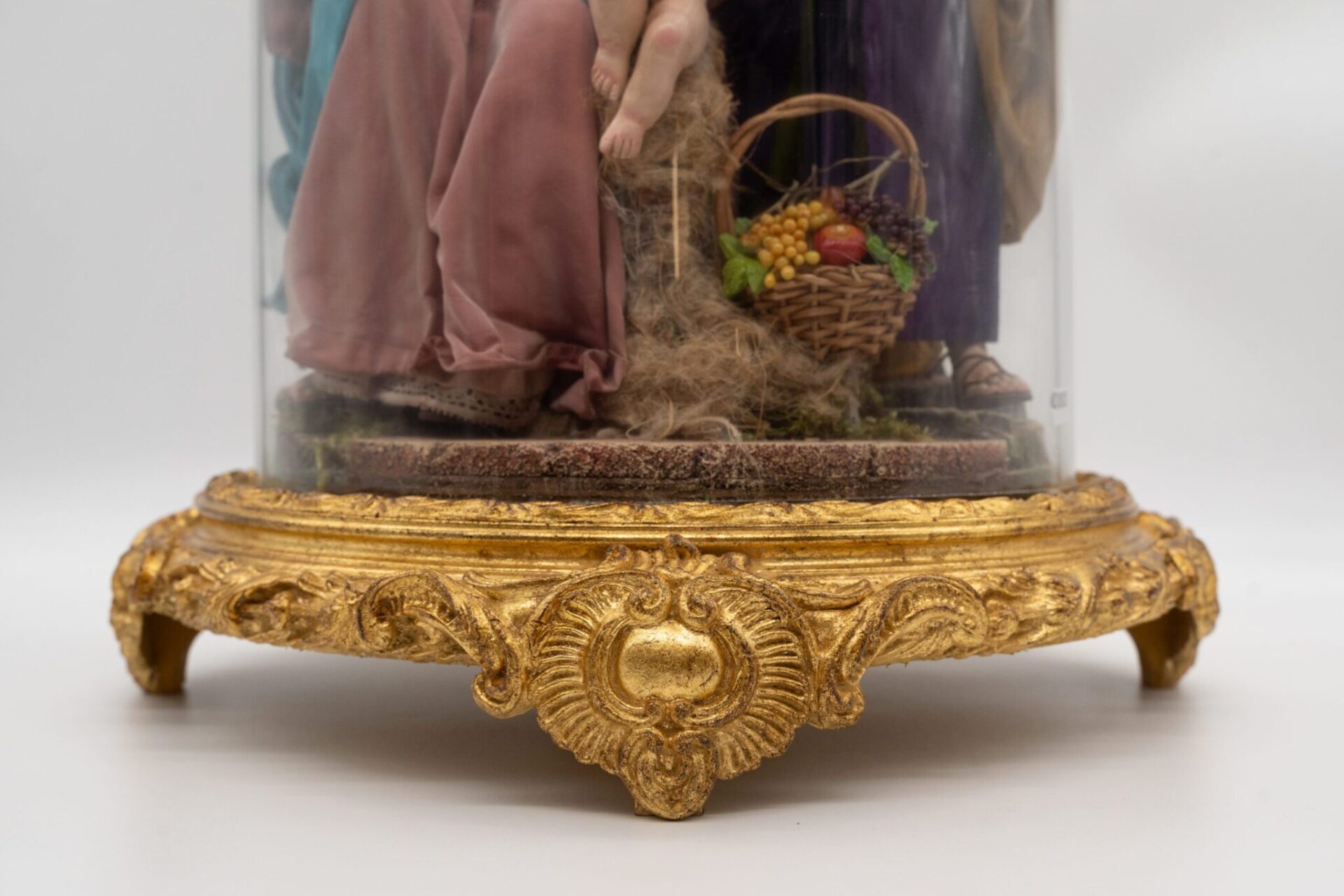 Presepe Napoletano con teca e base barocca con foglia oro, opera unica del Maestro Gaudino.