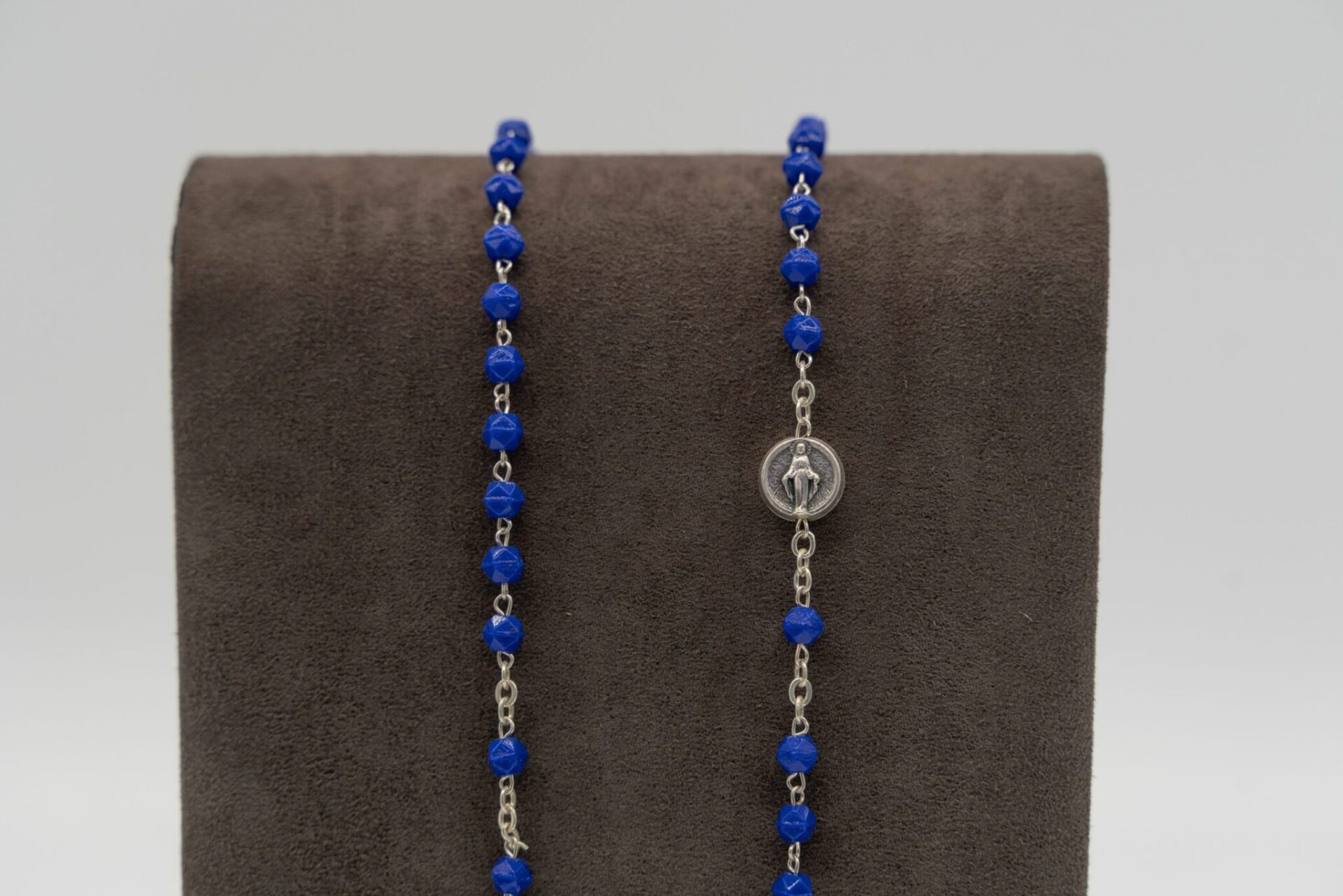 Una collana rosario a girocollo con grani blu di 3 mm è un accessorio davvero unico e colorato.