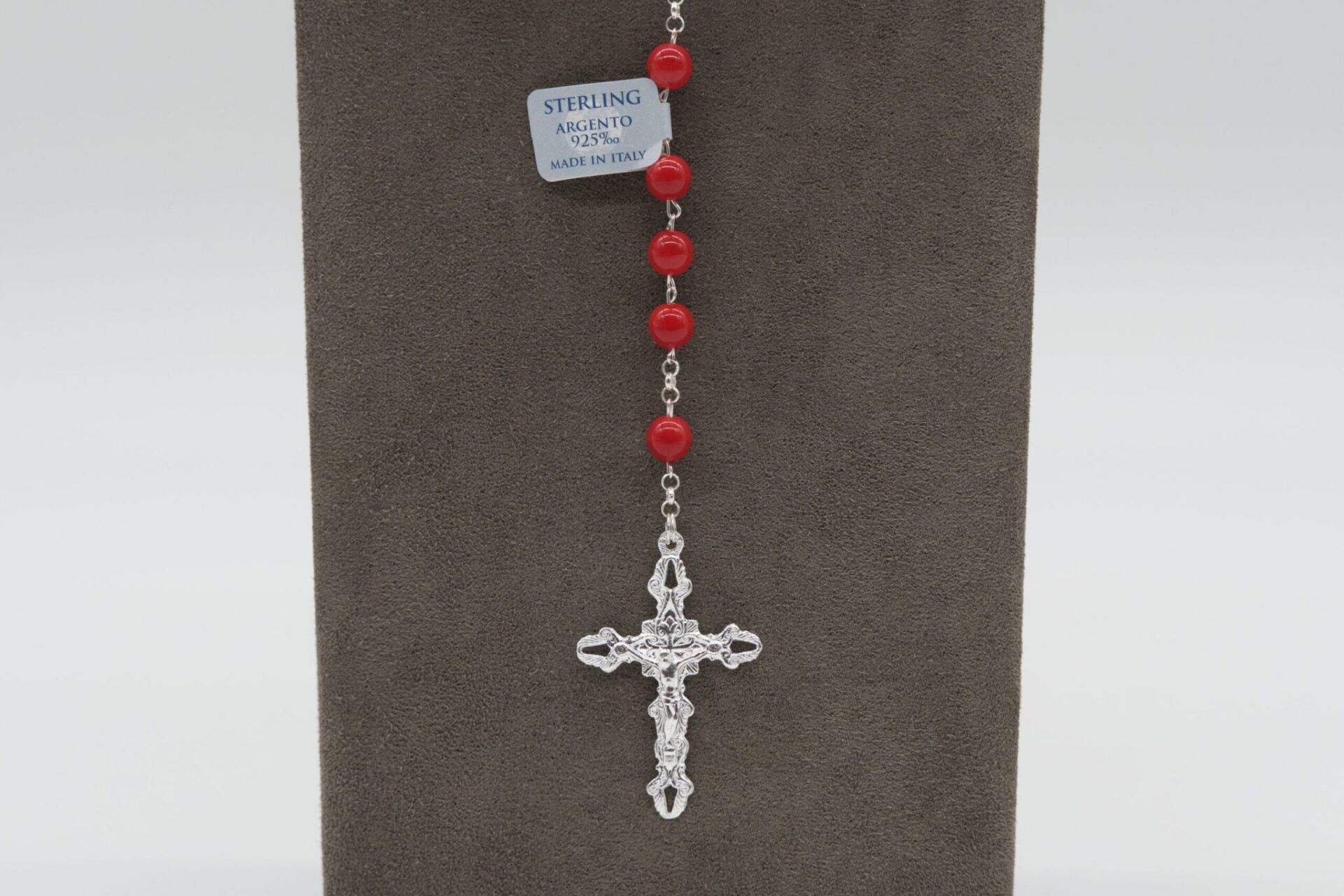 Rosario Argento con sfere Corallo rosso 5 mm