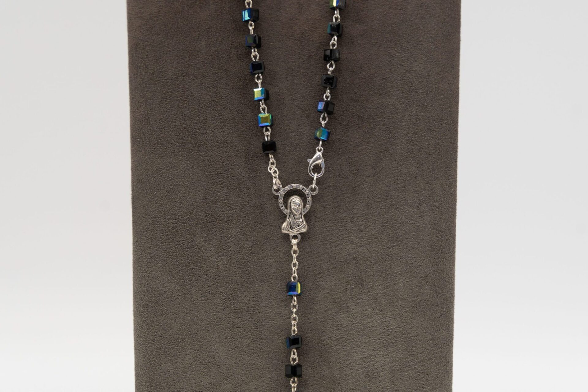 Corona Rosario con Grani a Cubo in Vetro Nero e Metallo con gancetto e possibilità di indossare questo splendido rosario.