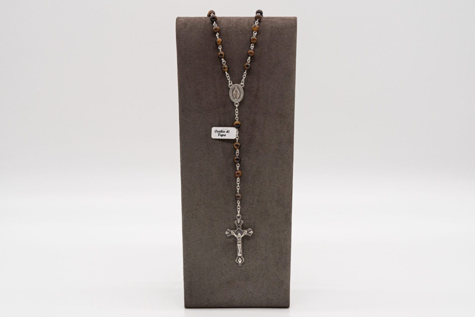 Al centro della collana è presente un medaglione ovale con l’immagine della Vergine Maria.