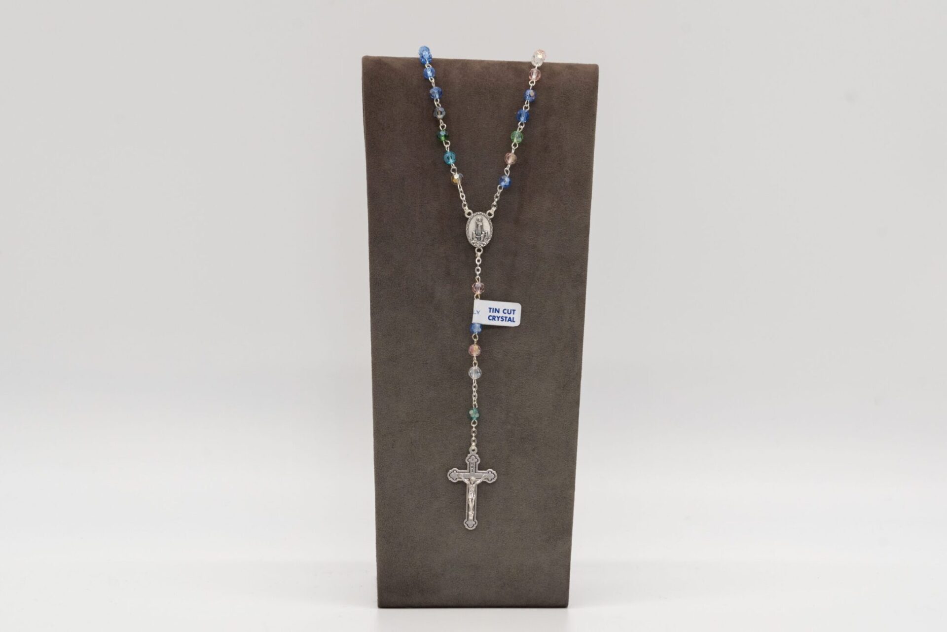 Rosario in cristallo colorato arcobaleno e metallo diametro 0,5mm.