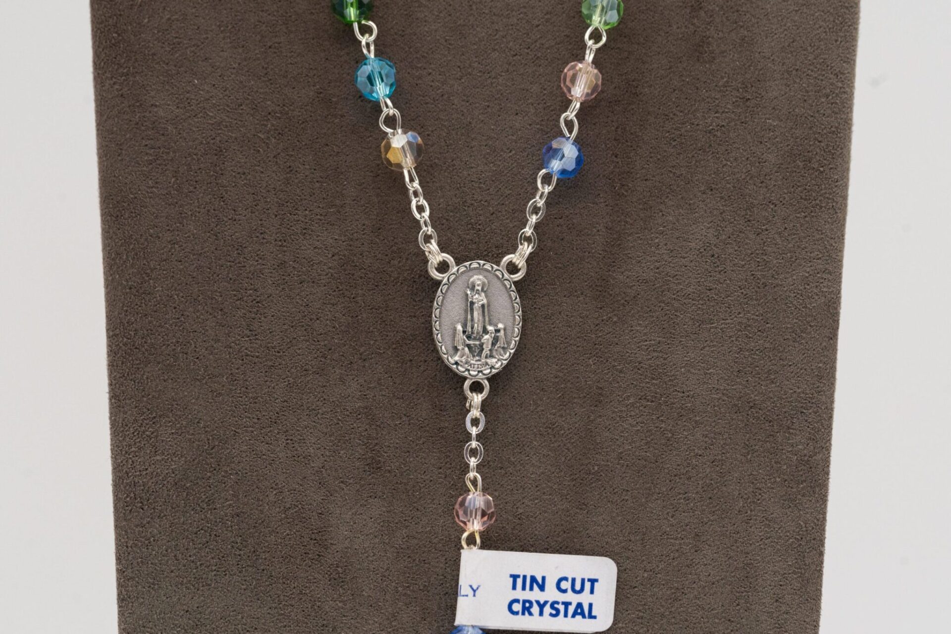 Un rosario in cristallo colorato e metallo è un elegante e luminoso strumento di preghiera.