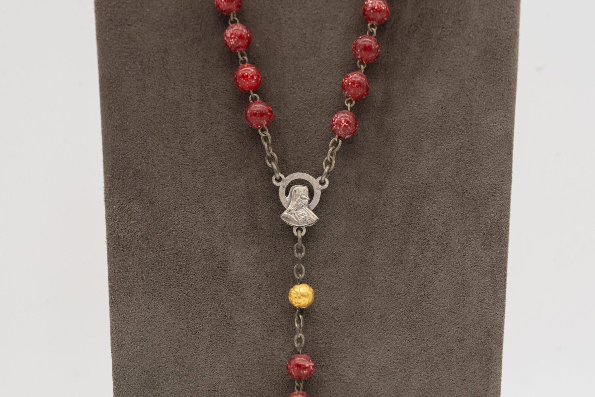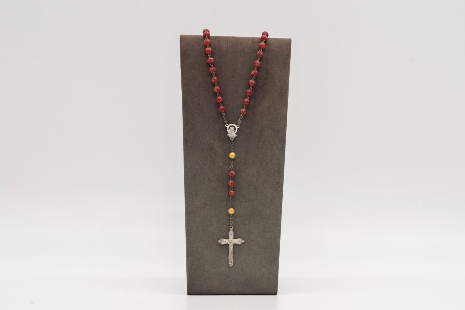 Il Rosario rosso simboleggia il sacrificio e l’amore divino, con i grani rossi che rappresentano il sangue di Cristo.