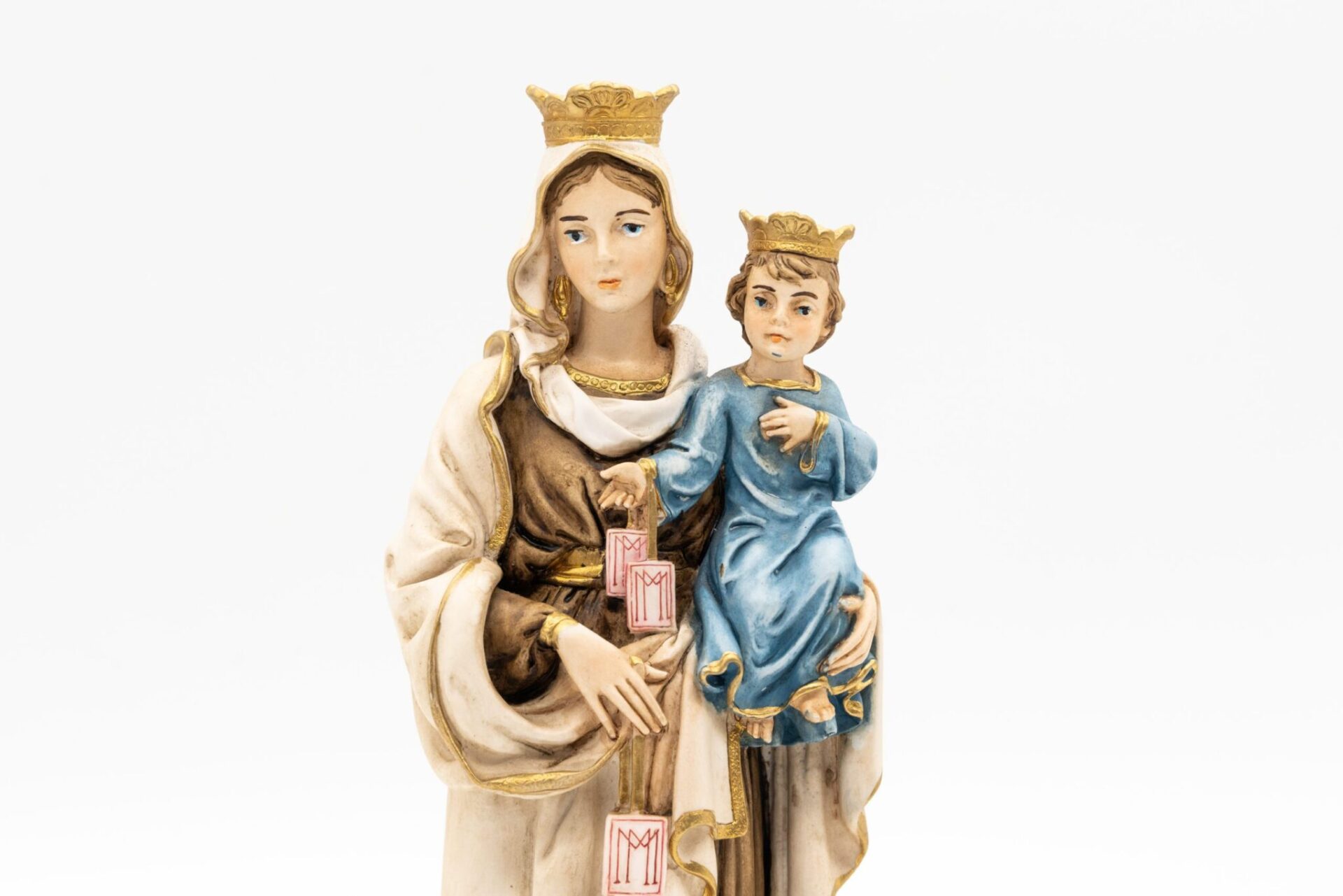 Questa rappresentazione è particolarmente venerata nella tradizione cattolica, simboleggiando la protezione e l’intercessione della Vergine Maria come patrona dell’Ordine Carmelitano.
