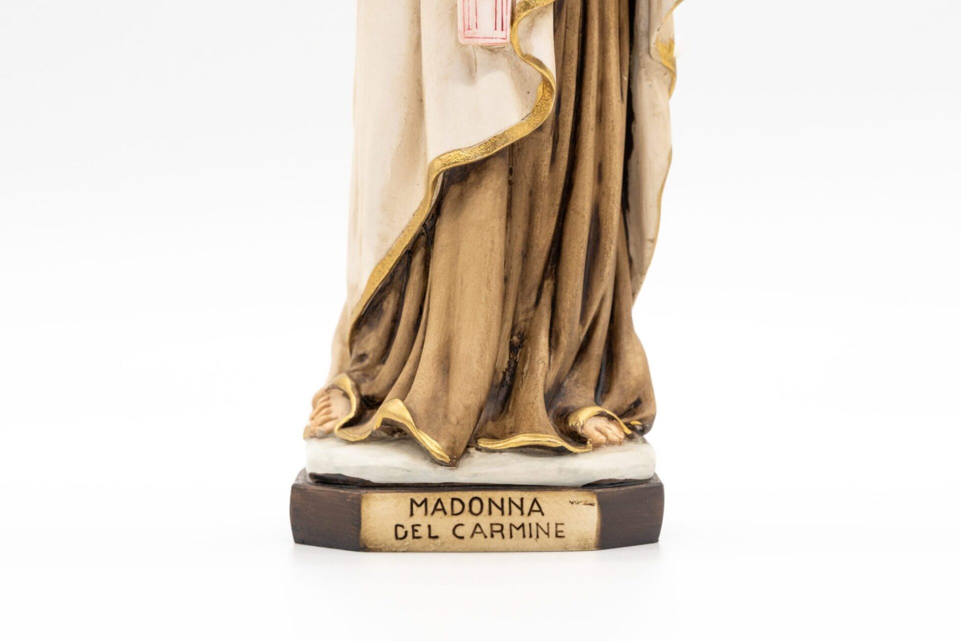 Alla base della statua è presente l’iscrizione “MADONNA DEL CARMINE”.