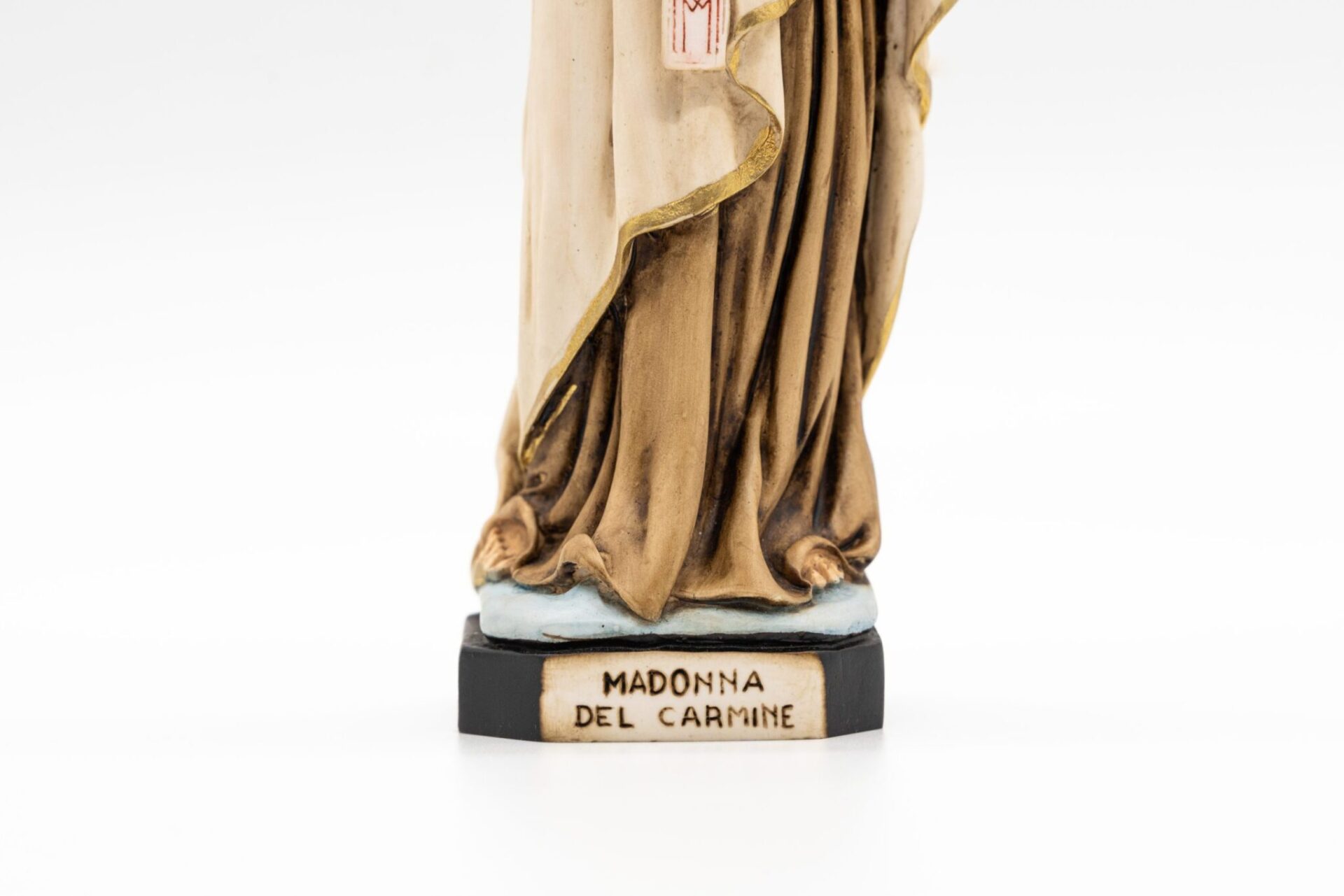 Alla base della statua è presente l’iscrizione “MADONNA DEL CARMINE”.