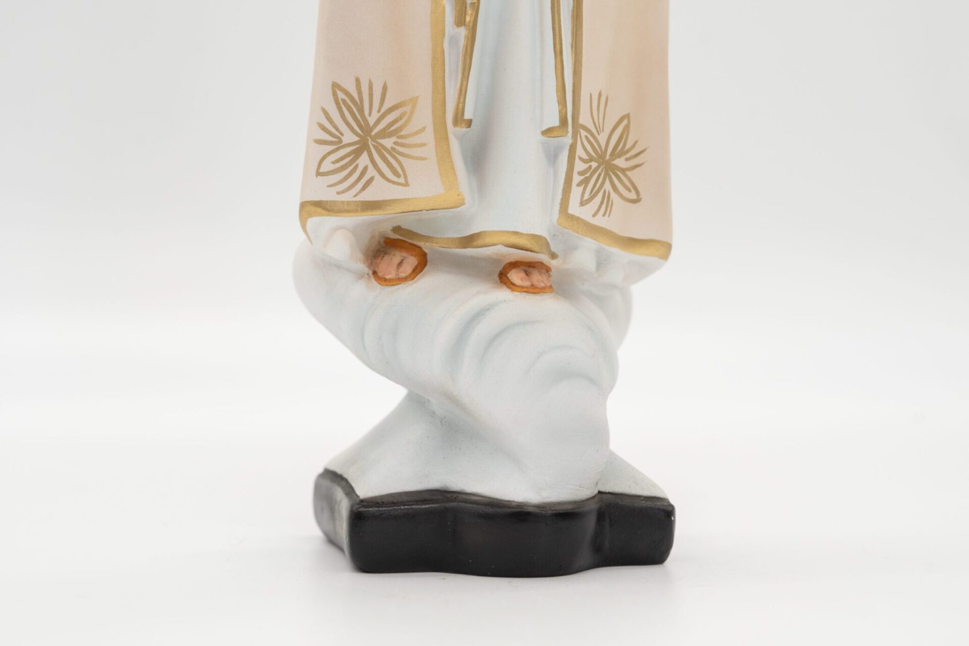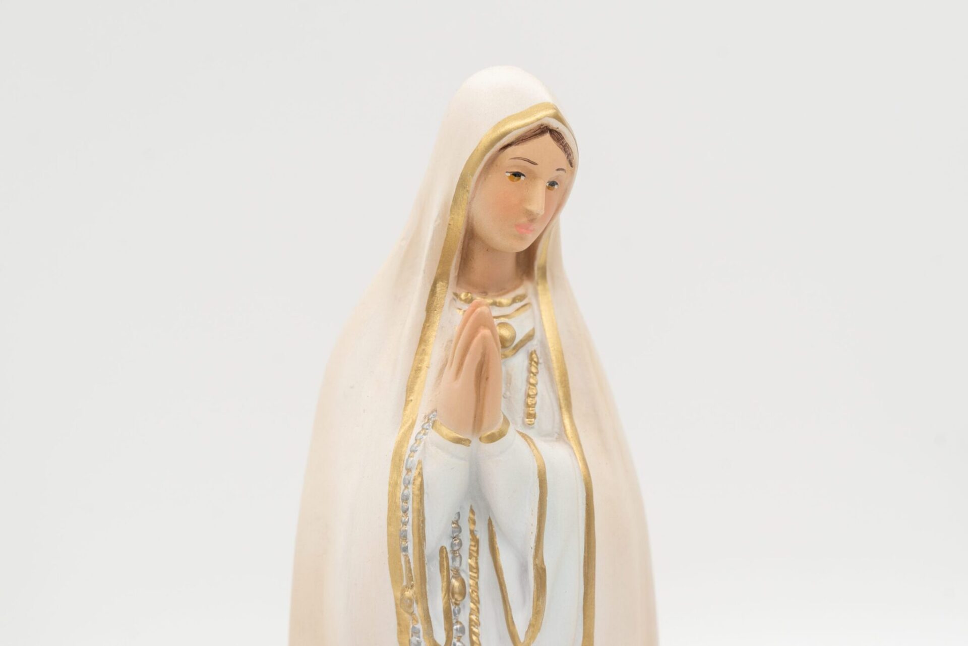 Statua Madonna di Fatima in resina piena dipinta a mano. La Statua è interamente realizzata in Italia ed è finemente lavorata, viso, mantello, vesti, capelli, sono curati in ogni particolare. Manifattura Napoletana