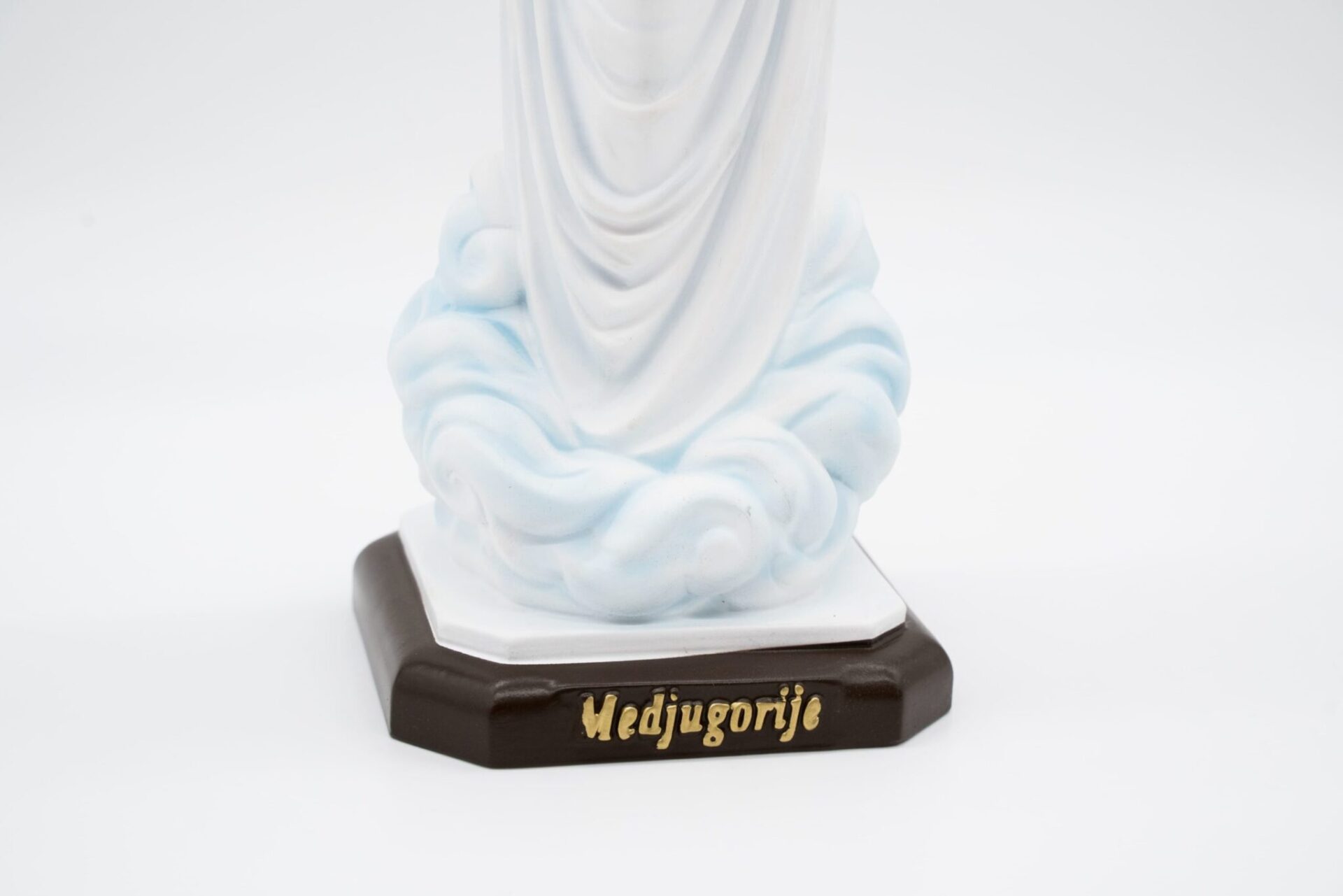 Questa rappresentazione è particolarmente venerata dai fedeli che credono nelle apparizioni mariane di Medjugorje, un luogo di pellegrinaggio situato in Bosnia ed Erzegovina. La statua emana un senso di pace e spiritualità, rendendola significativa per molti devoti.