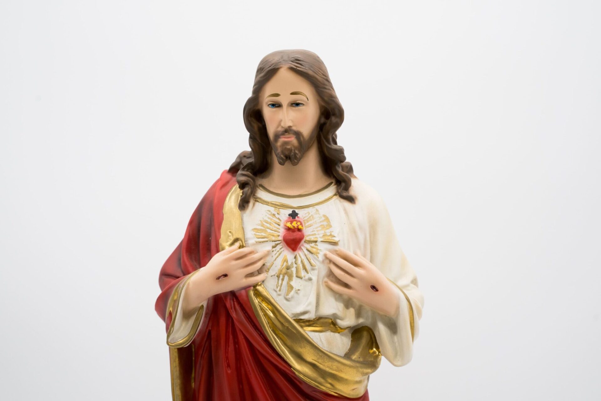 La statua è ricca di dettagli, come i capelli ondulati e la barba di Gesù.