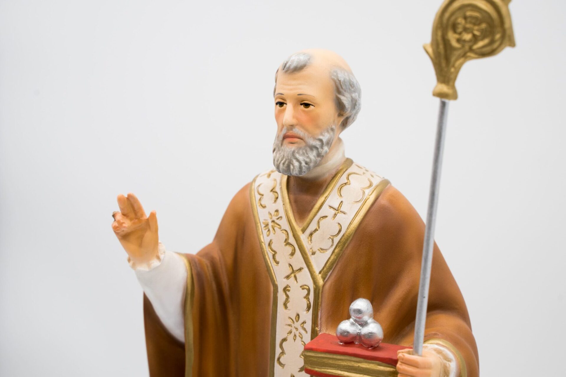 La figura emana un senso di autorità e venerazione, tipico delle raffigurazioni di San Nicola.