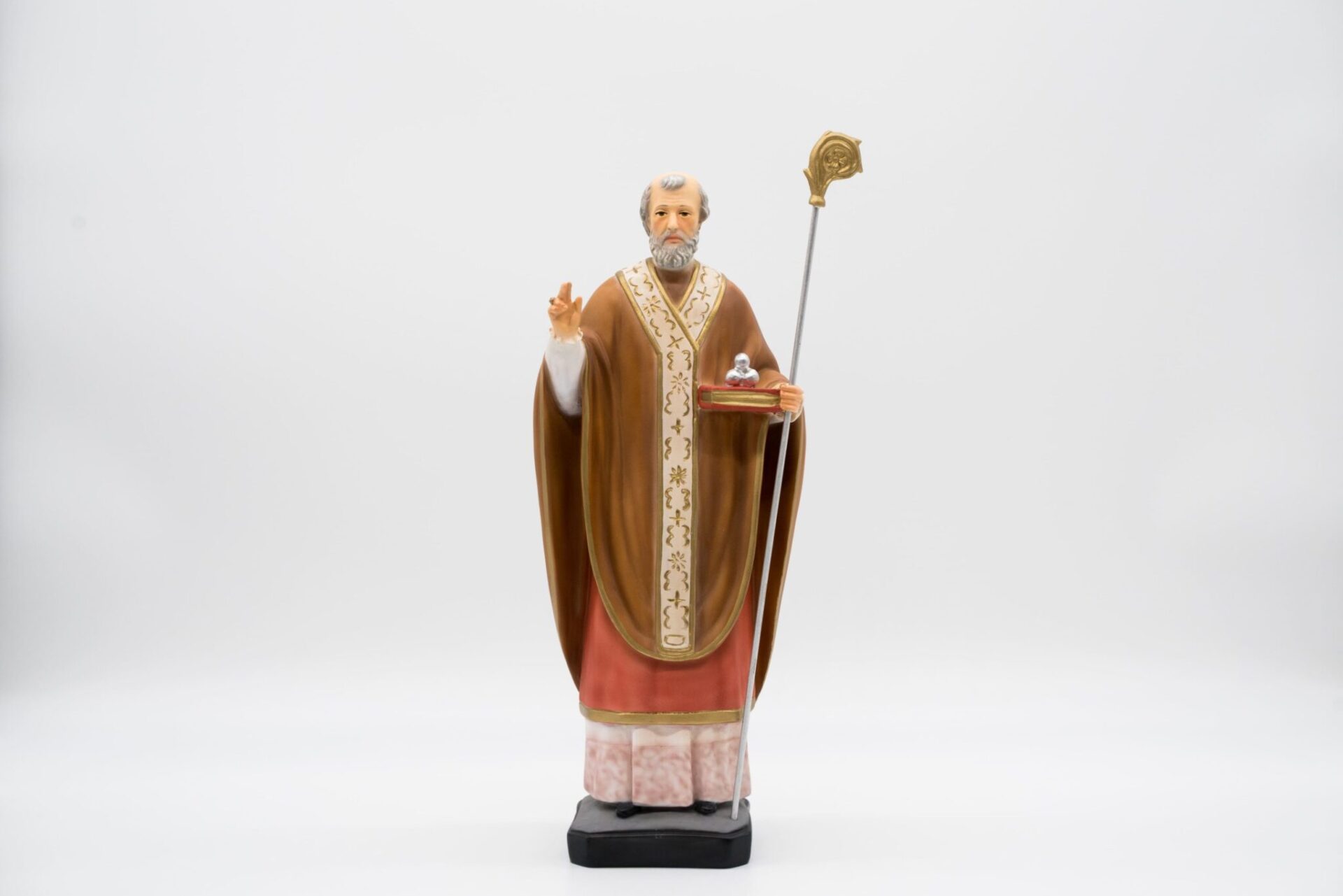 Questa statua è particolarmente interessante per la sua rappresentazione dettagliata e per l’uso dell’effetto bronzo, che conferisce alla figura un aspetto solenne e maestoso.
