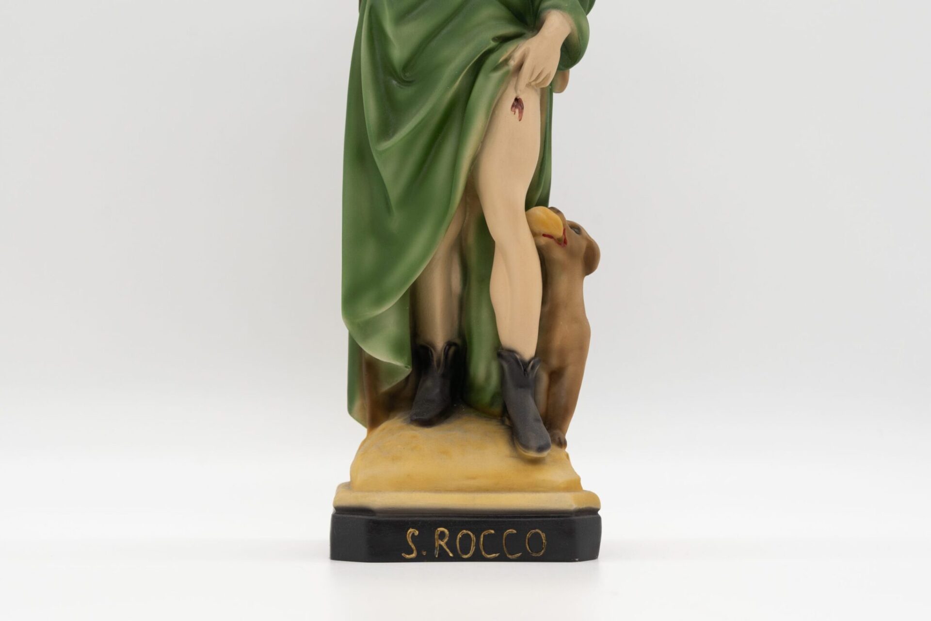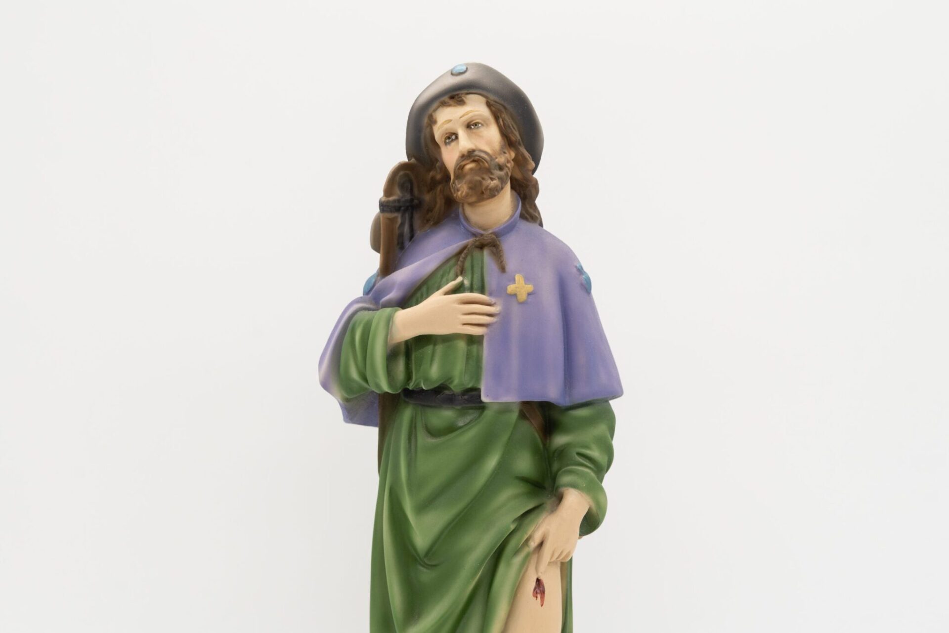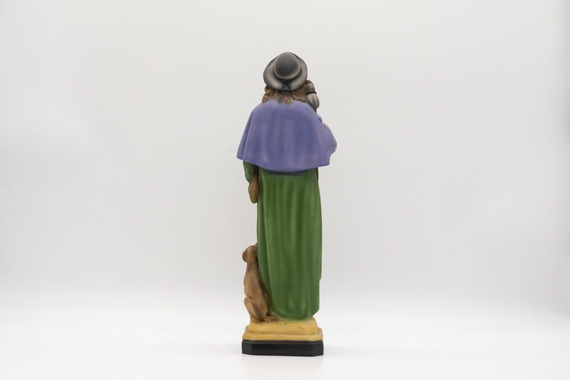 Statua San Rocco veste Viola in resina piena dipinta a mano. La Statua è interamente realizzata in Italia ed è finemente lavorata, viso, mantello, vesti, capelli, sono curati in ogni particolare. Manifattura Napoletana