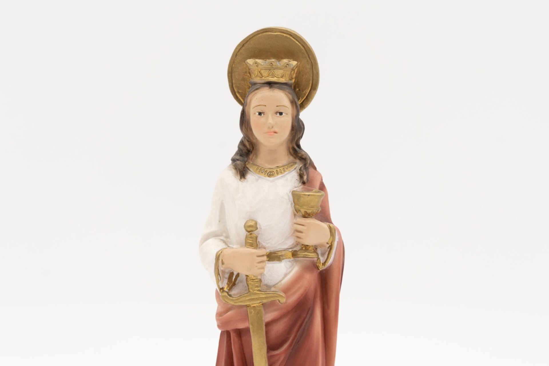 Statua Santa Barbara in resina piena dipinta a mano.