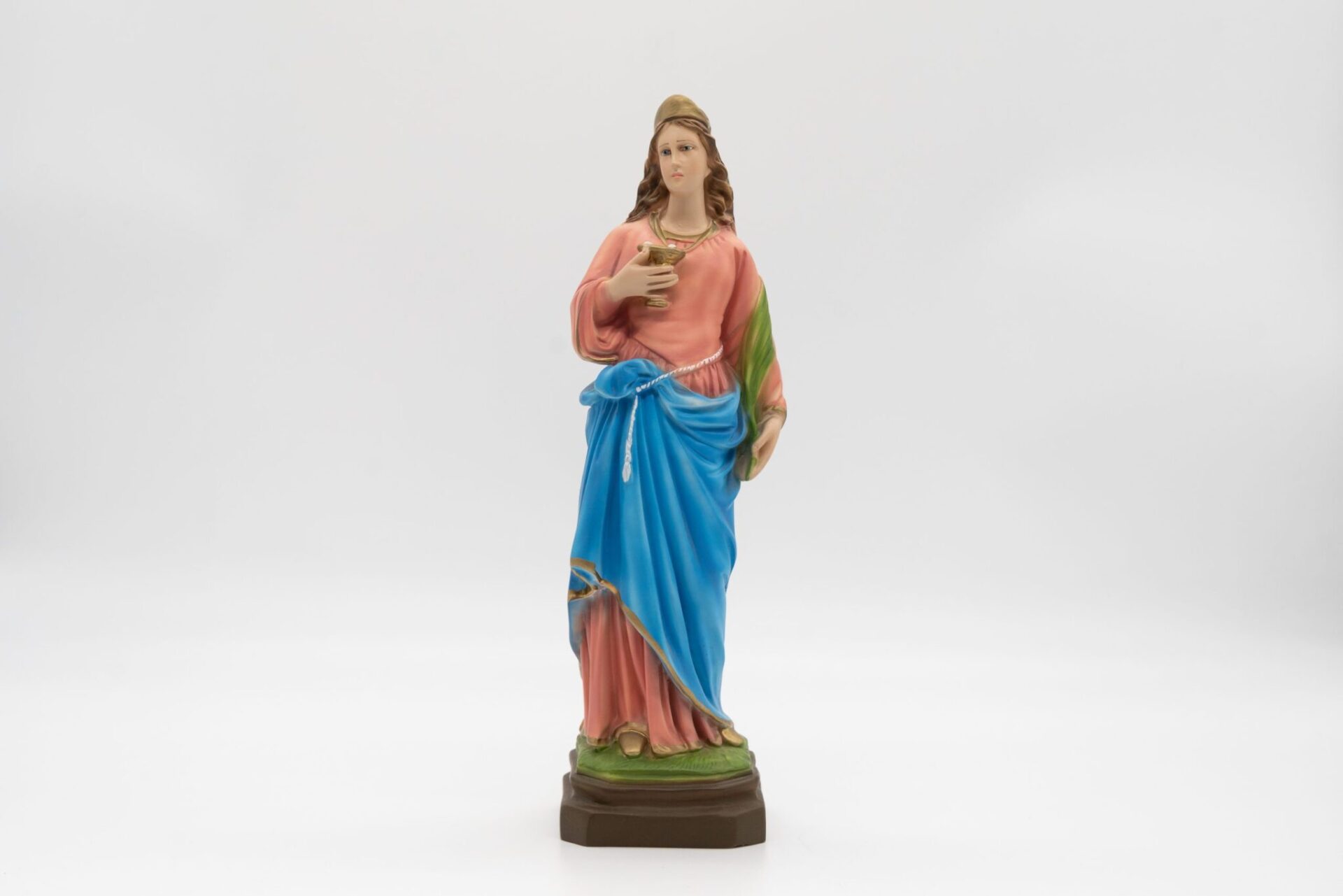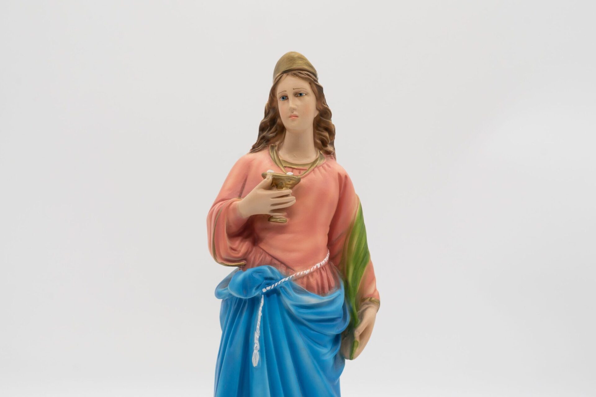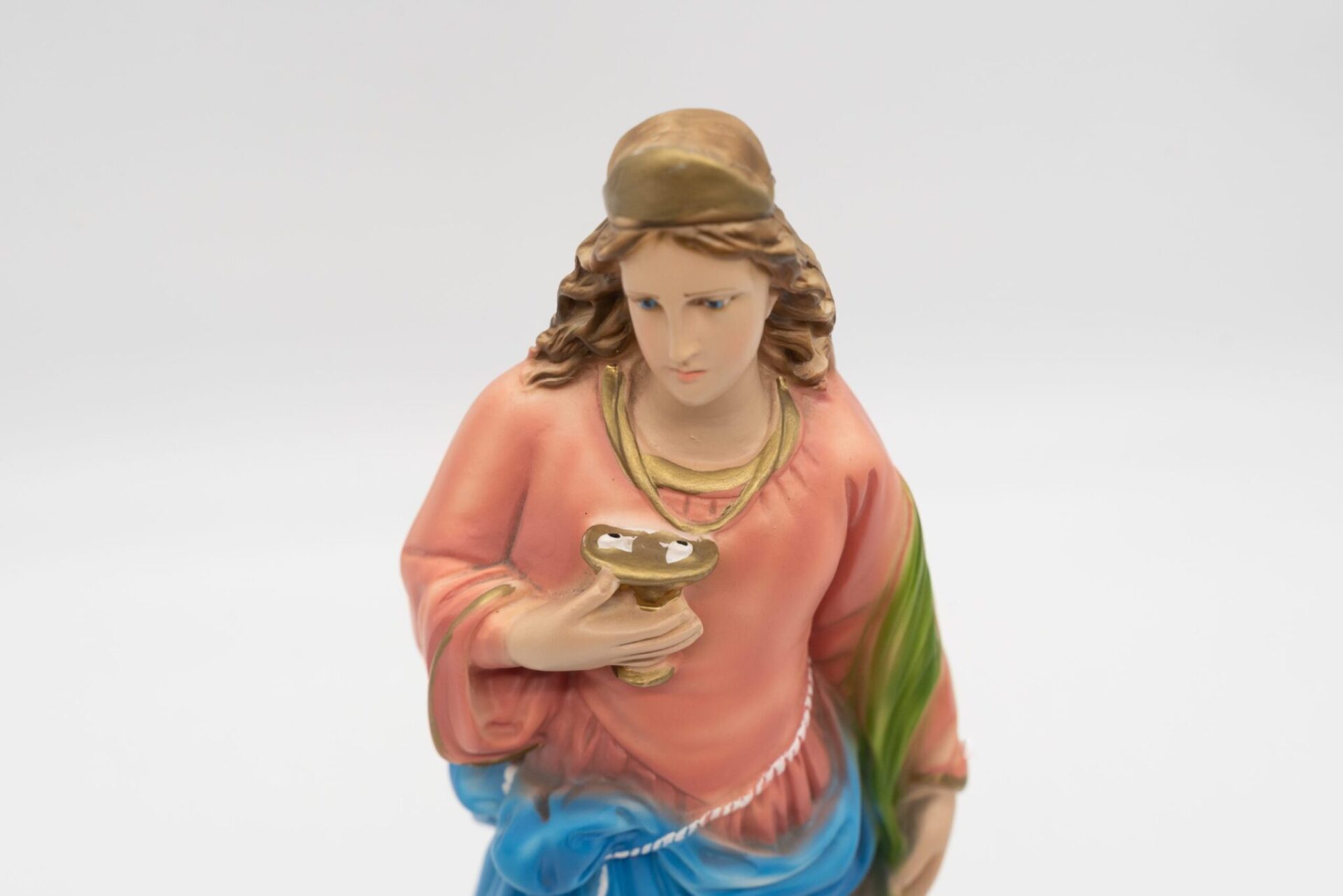Questa rappresentazione di Santa Lucia è particolarmente significativa per i fedeli, simboleggiando la sua purezza e il suo sacrificio.