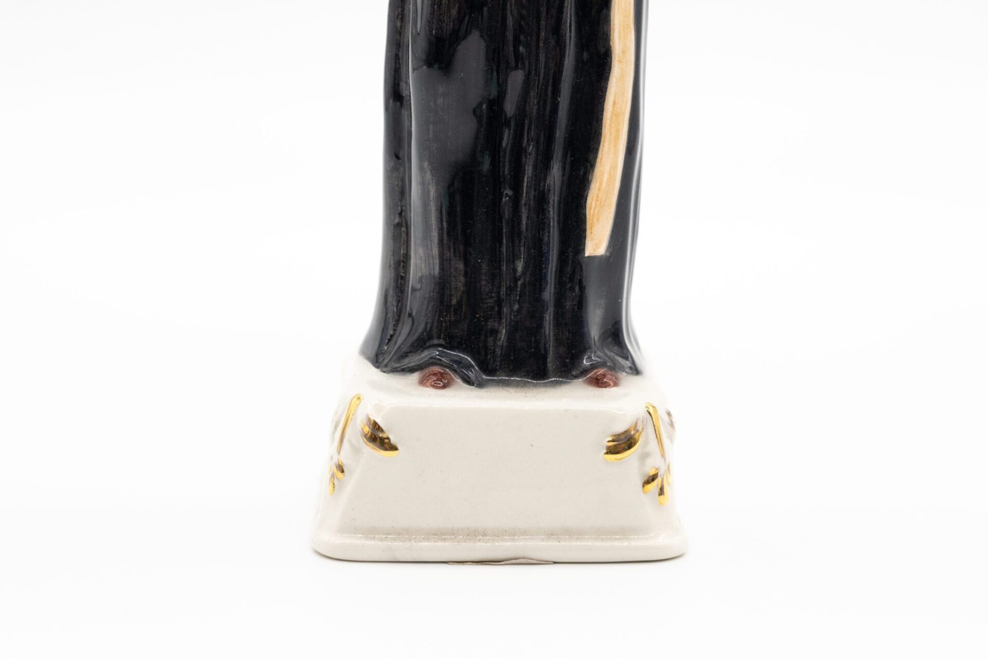 Questa statua è realizzata in ceramica e dipinta a mano con dettagli in oro.