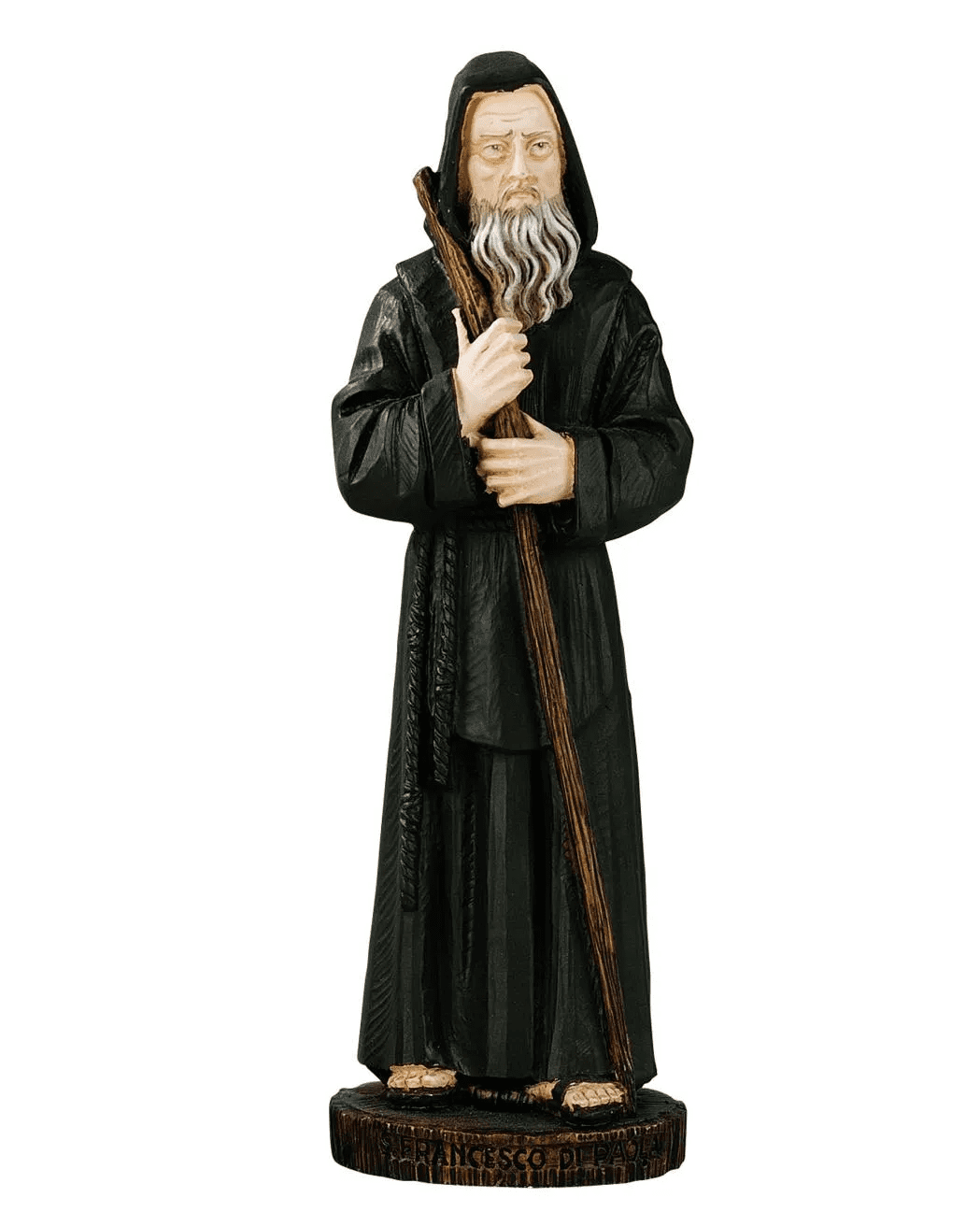 Statua raffigurante Santa Teresa, realizzata in resina e polvere di marmo, colorata a mano con l’utilizzo di colori acrilici ad acqua e ad olio.