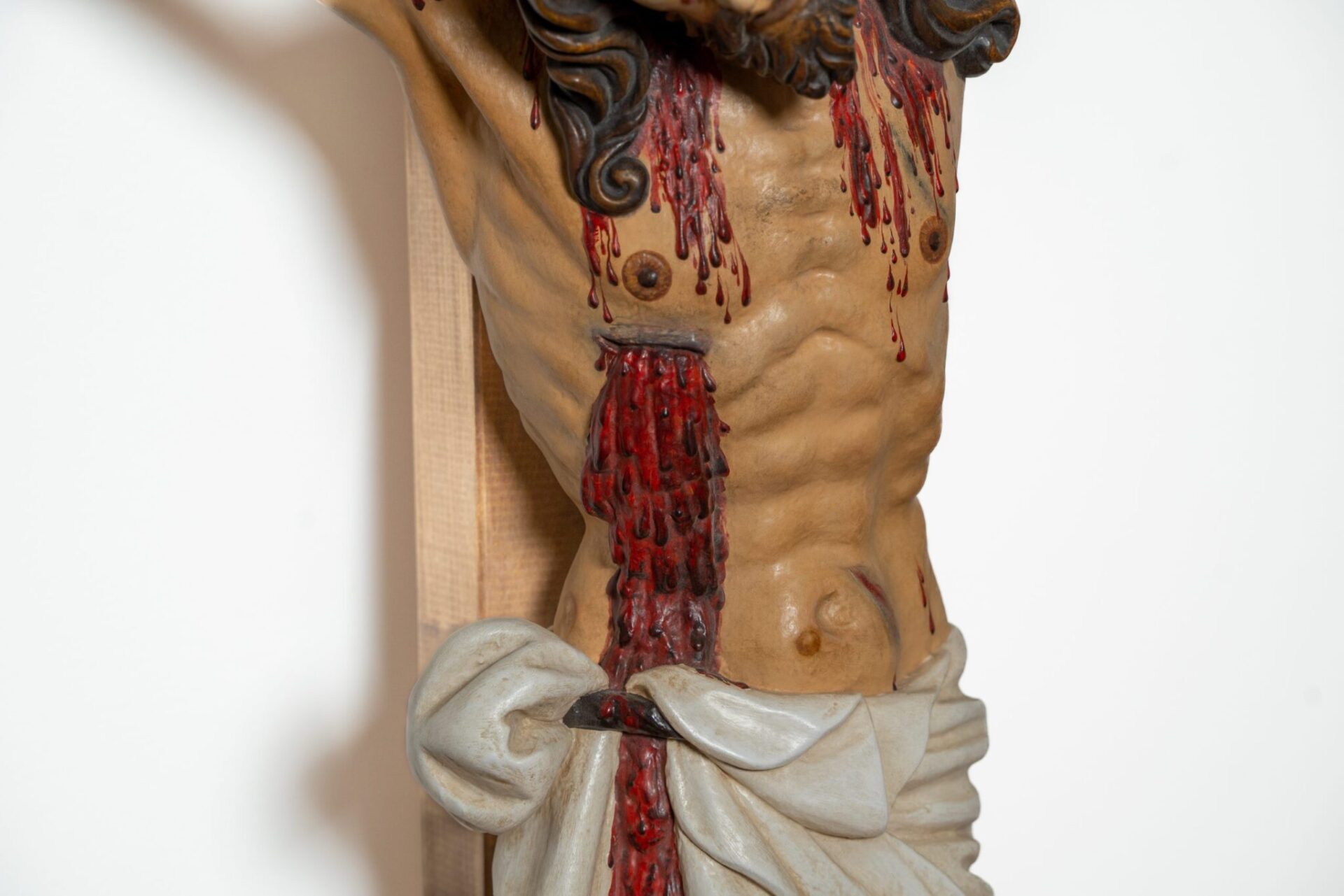 Per la decorazione sono stati utilizzati stucchi e colori ad olio per riprodurre i segni della flagellazione.