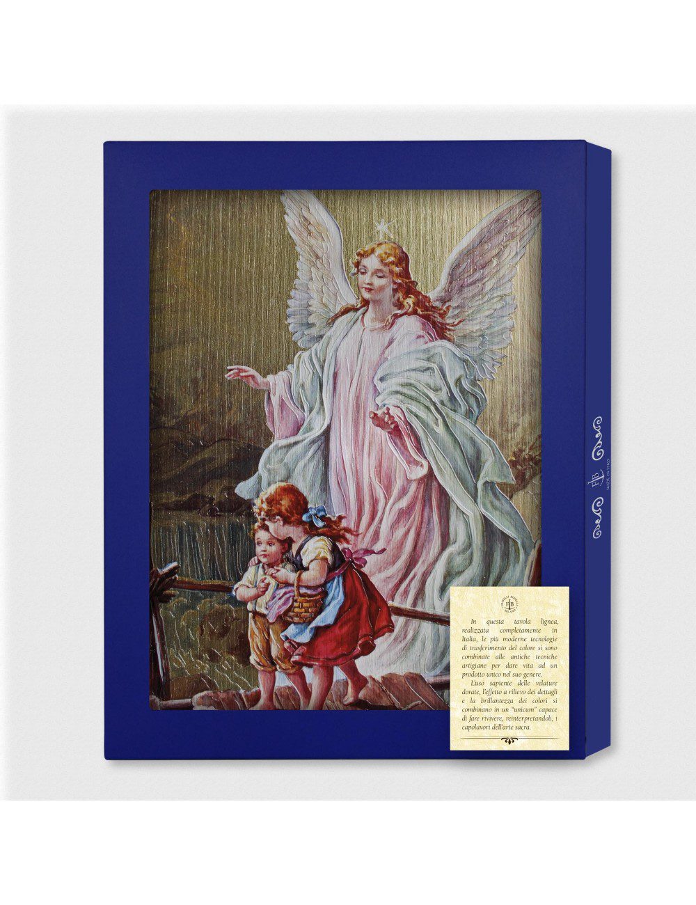 Tavola in nobilitato di rovere dorato raffigurante L’Angelo Custode.