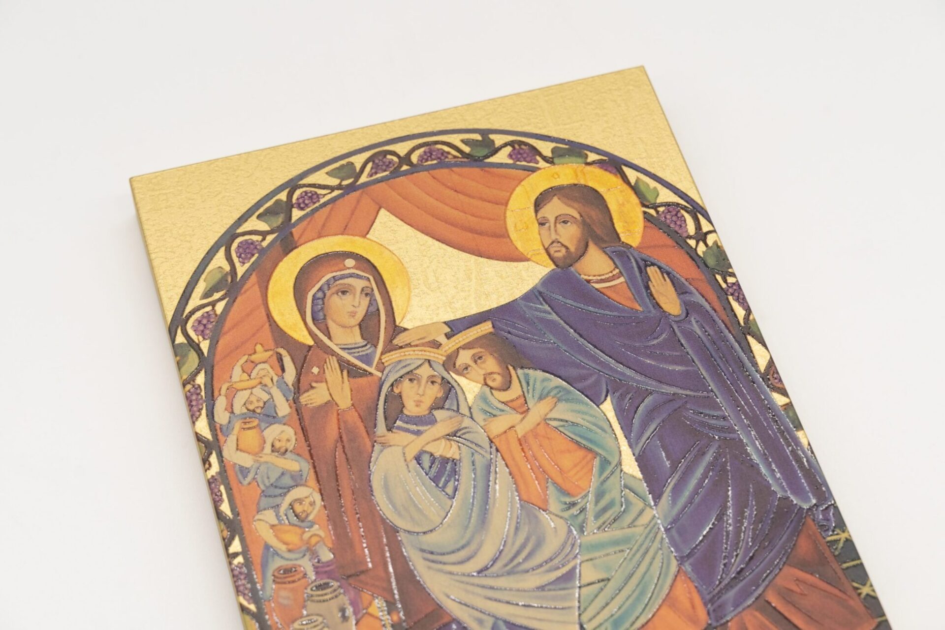 In questa tavola lignea, realizzata completamente in Italia, le più moderne tecnologie di trasferimento del colore si sono combinate alle antiche tecniche artigiane per dare vita ad un prodotto unico nel suo genere. L’uso sapiente delle velature dorate, l’effetto a rilievo dei dettagli e la brillantezza dei colori si combinano in un “unicum” capace di rivivere, reinterpretandoli, i capolavori dell’arte sacra.