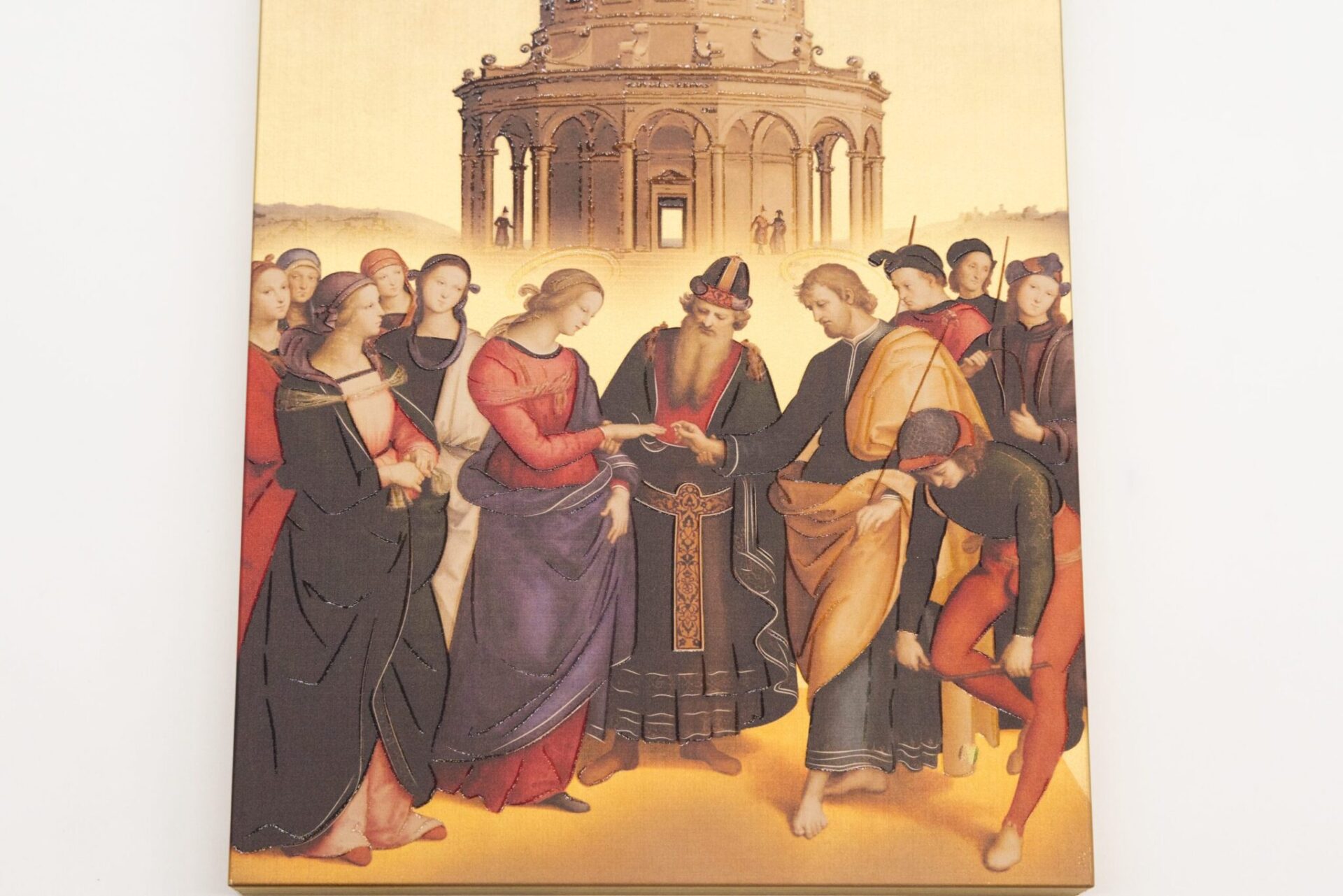 Tavola raffigurante Lo Sposalizio di Raffaello.
