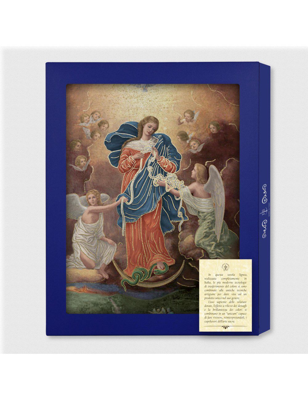 Tavola in nobilitato di rovere dorato raffigurante Maria che scioglie i nodi.