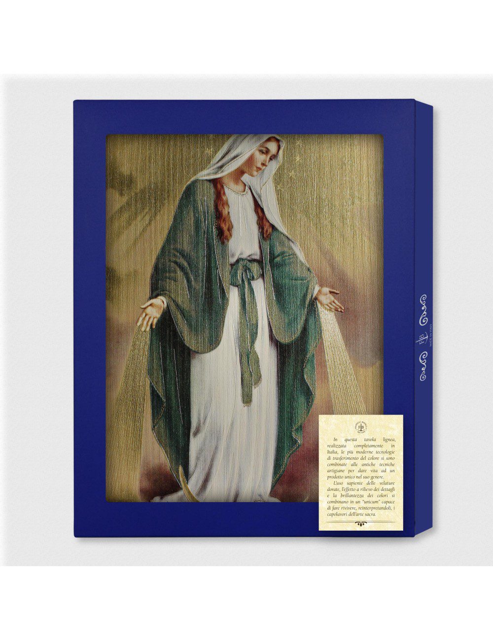 Tavola in nobilitato di rovere dorato che raffigura la Madonna Miracolosa.