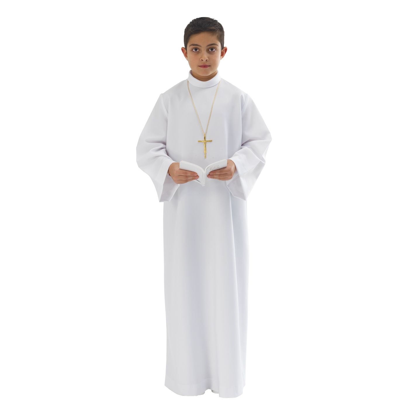 Gli accessori (croci, cingoli) e le acconciature (cerchietti e coroncine) eventualmente presenti nelle foto non sono compresi nel prezzo della tunica: possono essere ordinati a parte, scegliendo fra quelli proposti nelle rispettive categorie.